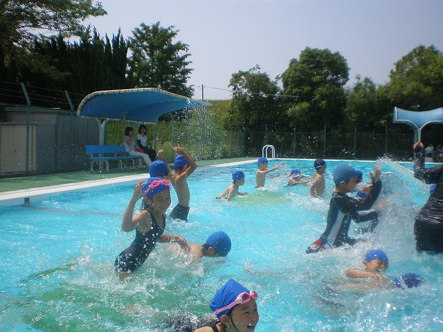 毎日暑い日が続き、心待ちにしていたプール開き。くじらになって水しぶきをあげたり、かにになってぶくぶくあわをはいたり、みんなで楽しく水遊びをしています。 |