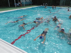 浮くこと、そして前に進むことを目標に水泳を行いました。多くの子どもが,5m以上泳ぐことができるようになりました。 |