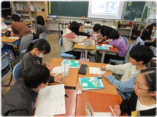 家庭科の学習で、朝食の役割について考えていました。教師が提示した資料の朝食例の中で「足りないもの」を考え合っていました。「ヨーグルトがあるとよい」「足すとすると…」…子どもたちから意見が出されています。