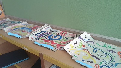 今日は一年生の図工を見せてもらいました。題名は【すいすいぐるーり】です。