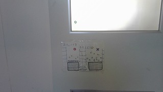 今日はトイレのドアにスリッパを片付けましょうの看板がありました。