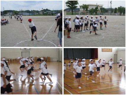 6月7日の金曜日から4・5・6年生で新体力テストに取り組んでいます。体育館で行う種目は計画通りに実施できますが、ソフトボール投げのように運動場で行う種目は、お天気をにらんでの実施となります。写真は5年生のソフトボール投げと4年生のシャトルランの様子です。