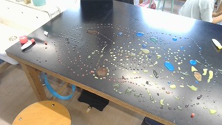 スポイトで吸ったりして水滴をつけたりしました。色とりどりな作品ができました。