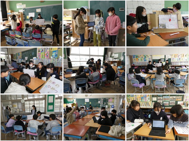 1月24日(水)、久しぶりに、下野こどもまつりを全校で行うことができました。昨日のリハーサルで保護者の方に観ていただいたおかげで、さらに発表の仕方が上手になったり、工夫したりしているグループもありました。自分たちが学んだことをいかに分かりやすく伝えるか、楽しく伝えるか、努力や工夫が見られ、いい取り組みとなりました。「うちの発表を聞きに来てください。」と呼び込みをする元気な声や楽しそうに移動する声が学校中に響いていました。無事に下野子どもまつりが実施できてよかったです。