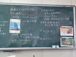 6年2組では、社会の授業がありました。1学期から学んできた歴史の学習が終わり、今回は、国際連合と日本の役割という学習をしました。国際連合のはたらきが良く分かりました。しかし、まだいろいろな世界のことがよく分からないこともあるので、これから授業でしっかりと学習したいです。