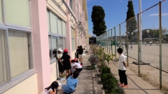 3年生が理科で太陽の動きの学習をしています。今日も、校舎前で観察できるように準備をして、実際に太陽の動きを確かめていました。確認できたことを、嬉しそうにみんなに報告する声が聞こえてきました。