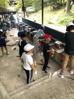 かまどになかなか火がつかず苦戦した班もありましたが、だんだんとできてきました。