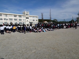 1月11日(木)、予告なしの避難訓練を行いました。掃除の時間の途中で、地震が起こり、そのあとに火災が起こったという想定の訓練でした。掃除の時間ということで、教室だけでなく、それぞれの場所で適切な行動をすること。さっと机の下にもぐったり、安全な場所に移動して、ダンゴムシのポーズをとったりすることができました。火災が起こったという放送の後、運動場に避難しました。全員無事に避難することができました。