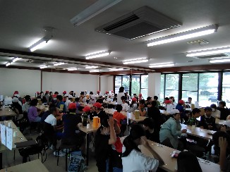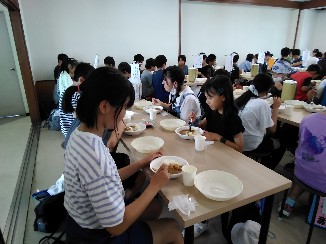 ボランティアガイドさんとの法隆寺の見学を終えて、お昼ご飯です。おいしくカレーライスをいただきます。