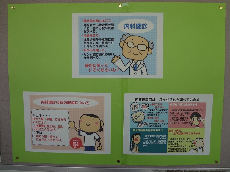 内科健診を実施するにあたり、校医の先生のご指導のもと、できる限りの感染症対策をして健診を実施しています。