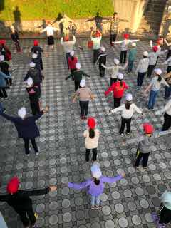 朝の集いです。ラジオ体操第1よーい。