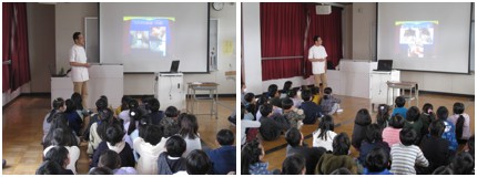 下野小では毎年この時期に、3年生が動物病院の先生からウサギの特徴と世話の仕方について教えていただく機会を持っています。それは、飼育小屋のピョン太の世話を4年生全員が当番制で行っているからです。今回も平山動物病院の平山澄人先生から、ウサギの体の特徴や世話をする時に気を付けなければいけないことを教えていただきました。初めて知ることも多かったようで、子ども達は「えーっ、そうなんや。」「知らなかった。」など、反応しながら熱心にお話を聞いていました。