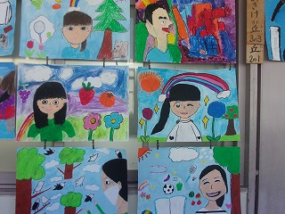 5年生での図工では、自分の顔を描いています。自分の顔の特徴をとらえて書くことは、難しいですが、完成した絵を見るとみんなそっくりに描けていました。