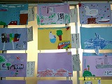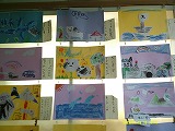 1年生の教室の前に1年生が描いたすてきな作品がかざってありました。とてもすばらしい作品でした。1年生が描いたとは、思えないくらい上手な作品でした。