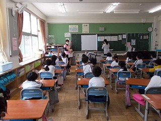 1年生の授業態度はとてもよく、話している先生や友達のほうをしっかりと向き、発表している子も気持ちよく発表していました。