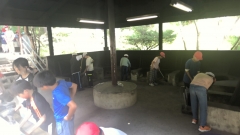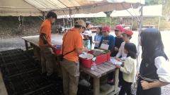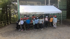 片付けを終えて、自然の家の方のチェックを受けています。合格できるでしょうか。