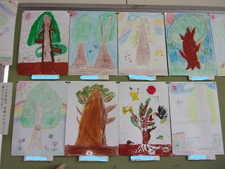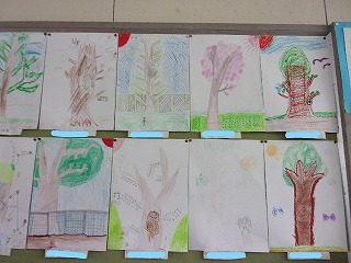 5月7日(金)、3年生の図工で、セコイアの木を一生懸命描いた作品が各教室に掲示してありました。描いた子どもたちは「楽しかった」「面白かった」と言っていました。