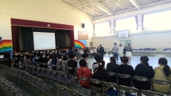 今日は、6年生が教職員を招いて、「感謝の集い」を開いてくれました。かつてのエピソード紹介やそれにまつわったクイズ、お礼の手紙など、いろいろな工夫をして、感謝の気持ちを伝えてくれました。合唱もとてもきれいでさすがでした。教職員からも、お礼として6年生が懐かしく感じる出し物をしました。とてもすてきな集いでした。