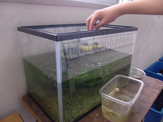 理科でメダカを飼育しています。