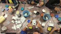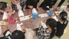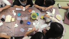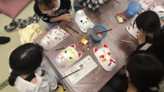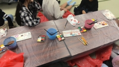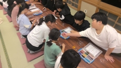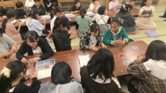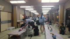 食事が終わり、伝統工芸体験活動が始まりました。自分なりの作品作りを頑張っています。