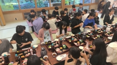食事が終わり、伝統工芸体験活動が始まりました。自分なりの作品作りを頑張っています。