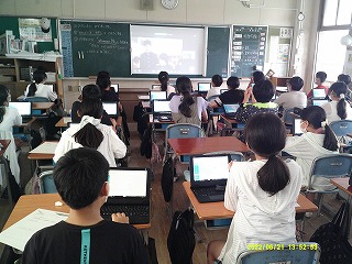 6月21日(火)5限目 神前小学校とZoomでつないでいじめ防止の授業をしました。