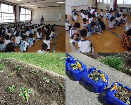 また、植木鉢であさがおを、学級の畑でさつまいもを育てています。