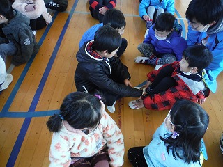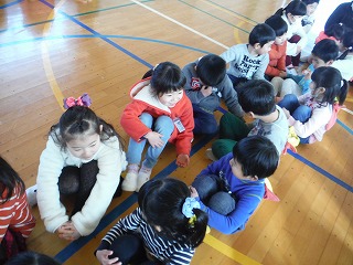3時間目は、年長さんと1年生が体育館に集まって、顔合わせをしました。