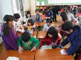 今日は、下野幼稚園、下野中央保育園、下野保育園の年長さんの子どもたちが、下野小学校へ来てくれました。