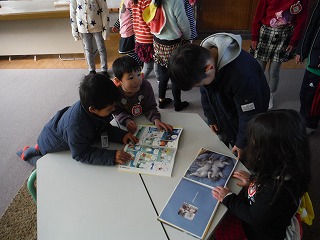 2時間目は、1組音楽、2組国語、3組算数の授業の様子を見てもらいました。1年生の子どもたちは、お兄さんお姉さんらしく、頑張っている姿を見てもらうことができました。年長の子どもたちは、とても静かにきちんと並んで授業の様子を見学してくれました。