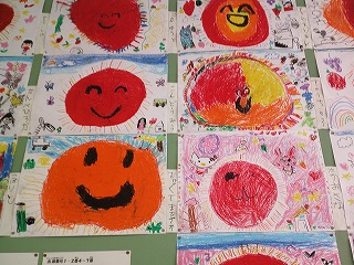 1年生の最初の図工は、おひさまにこにこで、初めて描いたとは思えないくらい上手でした。これからも上手に書いてください。