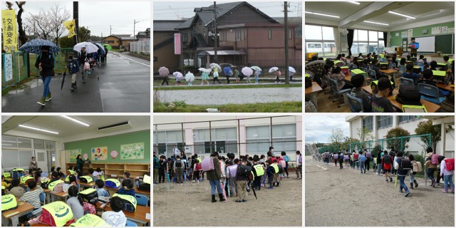 今日から、1年生を入れての登校班での登校でした。初日から、強風と雨でしたが、頑張って傘をさして、元気に登校する姿を見て、感動しました。昇降口では、6年生や先生たちが出迎えて、傘をしまったり、合羽を片付けるお手伝いをしてくれました。教室では、引き出しの使い方やランドセルのしまい方、トイレの使い方など、たくさんのお勉強をしました。3限目は、町別の教室に分かれて、町別児童会を行い、新しい班のメンバーの確認や並び方の確認をし、集団下校をしました。帰りは、雨が上がって晴れていたので、よかったです。