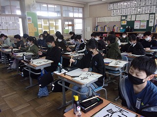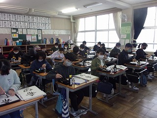 12日は、新年試筆がありました。6年生は「希望」という字を書きました。みんな集中して静かに取り組んでいました。みんながどんな字を書いたのか、見るのも楽しみです。