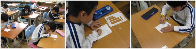 1年生は、昔遊びを教えていただいた楽寿会のみなさんにお礼の気持ちを込めて、南画場を書きました。丁寧に気持ちを込めて書きました。喜んでもらえるとうれしいです。