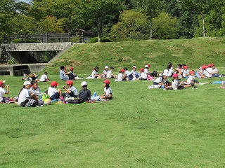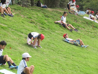 3・5年生で垂坂公園に遠足に行ってきました。長い距離をみんなで頑張って歩きました。5年生は3年生を気遣う姿も見られ、とても頼もしかったです。公園では、弁当を食べた後、ボール遊びをしたり、縄跳びをしたり、坂滑りをしたりして、楽しく遊びました。事故やケガもなく、楽しい遠足にすることができてよかったです。