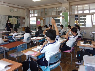 6年生の国語では「イースター島にはなぜ森林がないのか」という勉強をしています。6年生では、文の量も多くなりますが、わかりやすく読むために工夫をしています。教科担任制で、どのクラスも同じ先生が教えてくれるので、分かりやすいです。