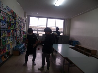 先週の子どもまつりで1年生から教えてもらった「昔遊び」を体験しました。