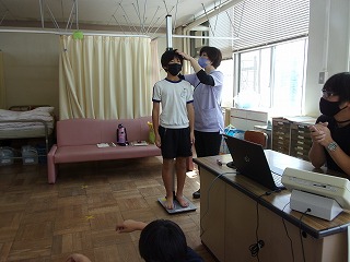 今日は、発育測定がありました。みんな、どれくらい成長しているのか楽しみにしている様子でした。感染症対策のため、少人数ずつ行いました。