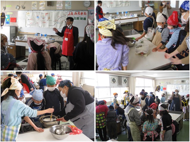 14日(木)、JAみえきたの職員の方々に教わりながら、3年生が豆腐づくりに挑戦しました。国語『すがたをかえる大豆』の学習と関連させて、3年生はこれまで学習園で大豆を育て、地域連携授業では石うすできな粉を作りました。この日も、今までの学習に勝るとも劣らない真剣さで作業に取り組み、美味しい豆腐を作り上げることができました。お手伝いいただいた保護者の皆さん、ありがとうございました。