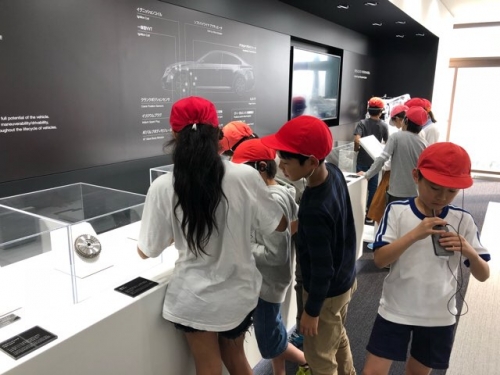 デンソー工場内を見学させていただいた後、ロビーでの様子です。