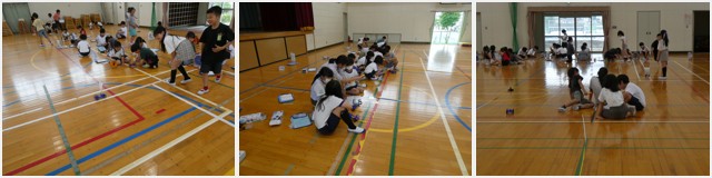3年生は、体育館で理科の実験「風やゴムのはたらき」を行っていました。送風機で風を当てて、風の強い弱いで車の走る距離を測ったり、ゴムを伸ばす長さを変えて、車の走る距離を測ったりしていました。班で協力して、実験をするというのも、学習の大事な点です。予想と比べて結果はどうだったのかな?そのあとが大事です。