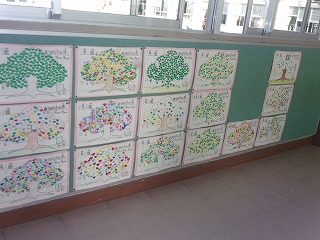 ました。各クラスから集めた台紙は児童玄関前に貼ってあります。「ありがとう」がたくさん集まりました。『ありがとうの木』がなくても「ありがとう」という言葉であふれる学校になってほしいです。