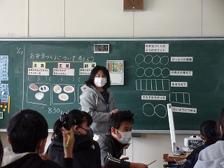 27日(木)に、6年2組で食育の授業がありました。主食・主菜・副菜のことについて学びました。お弁当に入れる主食・主菜・副菜の割合も学びました。今日学んだことを、家に帰っておうちの人にも伝えたいと思いました。