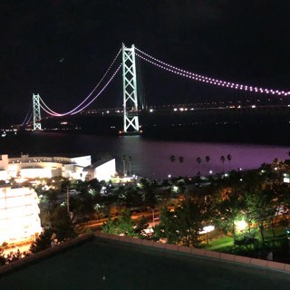 ホテルから見える夜景です。明石海峡大橋がライトアップされて綺麗です。