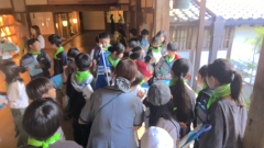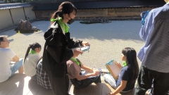 二日目最初の見学地、竜安寺に着きました。みんな石庭を眺めています。