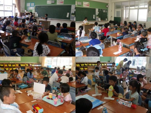 小学校で初めての作品展の後、学級で作品発表会を開きました。一人ひとりが、作品を作る時に、工夫したところやよく見てほしいところを発表しました。友だちの発表を聞いて、作品に込められている夏休みの頑張りが伝わってきました。わいわい楽しい発表会になりました。