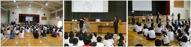 6月7日(金)、とみまつ隊による交通安全教室を行いました。低学年、中学年、高学年1時間ずつ、それぞれの学年に合わせた内容で、しっかり学ぶことができました。