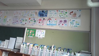 3年生は図工で『にじんで広がるものがたり』というテーマで絵をかいていました。