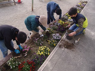 みんな真面目に、花を植えたり、草取りをしたりしていました。