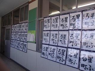 火曜日に5年生最後の習字の授業で、「星ふる町」の清書をしました。